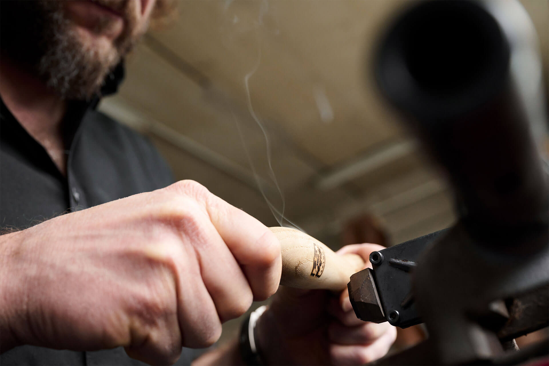 Zum Schluss bekommt jedes Vintage-Produkt das unverwechselbare Logo von Hand aufgebrannt. Die Stempel kommen aus einer lokalen Gießerei.
