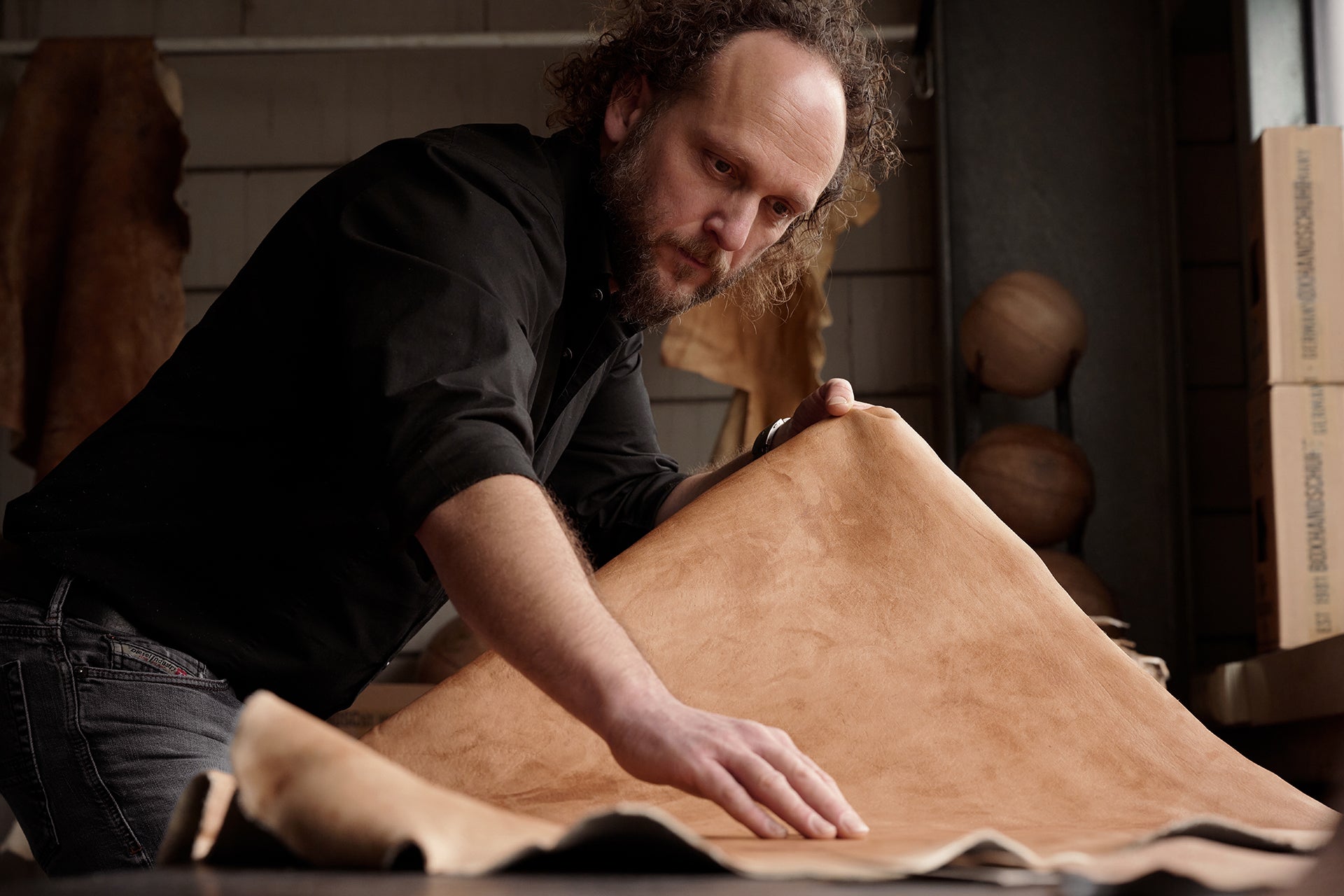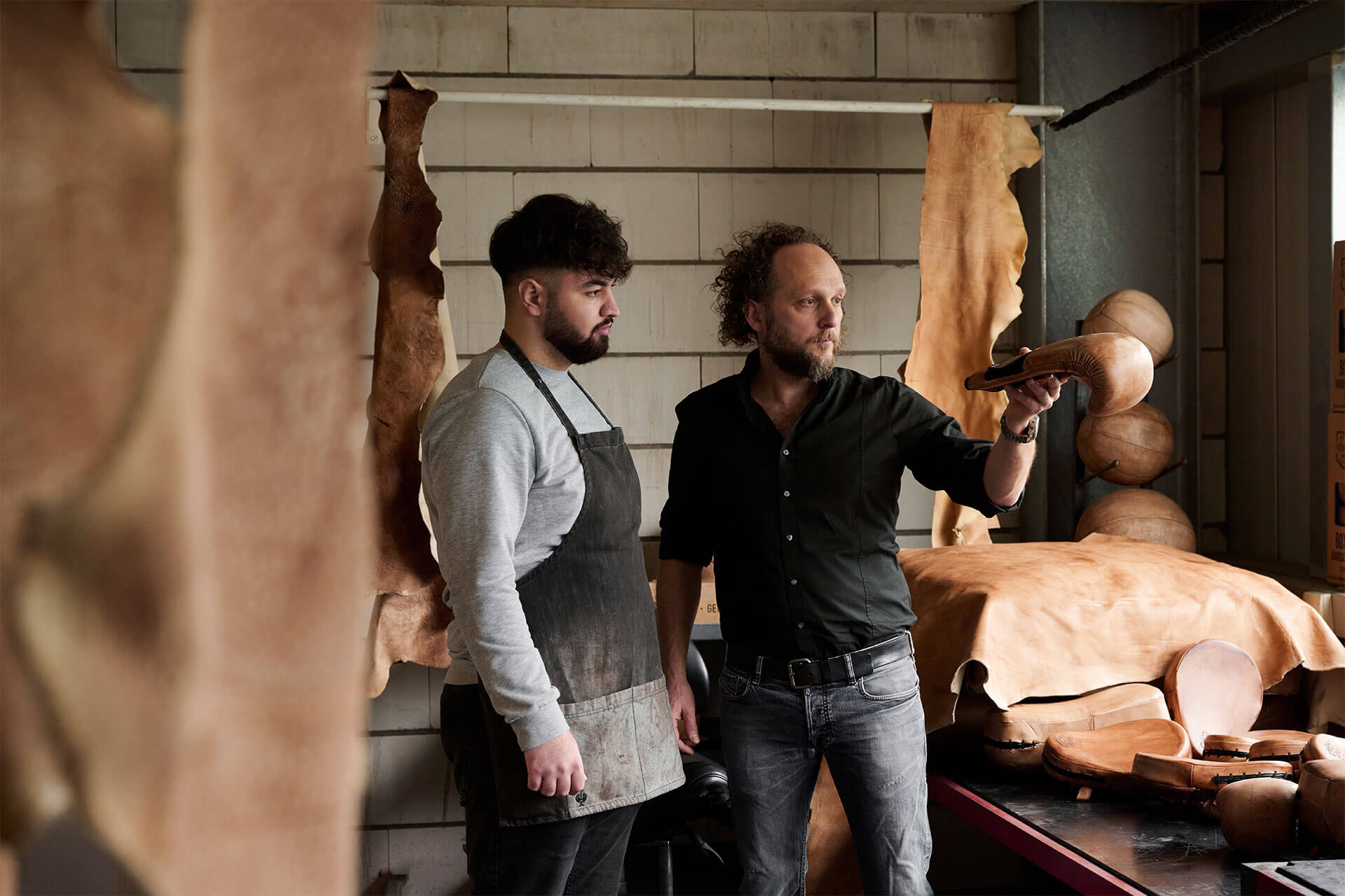 Bei der Wahl der Materialien legen wir besonders großen Wert auf Qualität. Das Leder aus deutschen Gerbereien wird vor der Verarbeitung ausgiebig geprüft, um die erwartete Qualität sicherzustellen. Das gilt selbstverständlich auch für die anderen Materialien, die zum Einsatz kommen, wie Holz und Eisen.